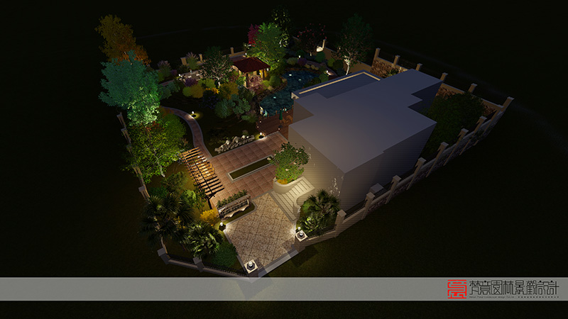 庭院设计中,优雅的景观照明点亮了庭院夜间的美景。