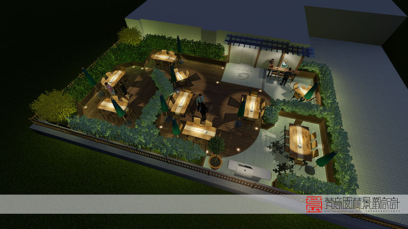 屋顶花园设计中,防腐木露台结合美妙的景观照明,增添了更多浪漫的氛围。