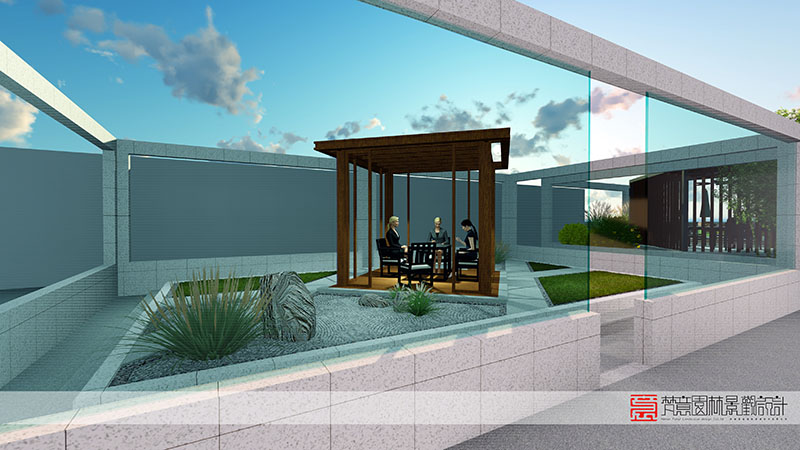 这个现代风格的屋顶花园景观设计位于郑州,是一家企业的屋顶景观项目。