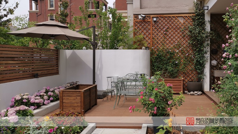 别墅庭院设计通过选择柔和的色调和大胆的纹理来表达庭院设计的个性。