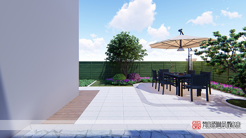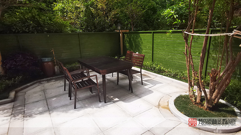 为了创造简单而令人惊叹的外观,庭院设计使用了木板在周围创建栅栏。